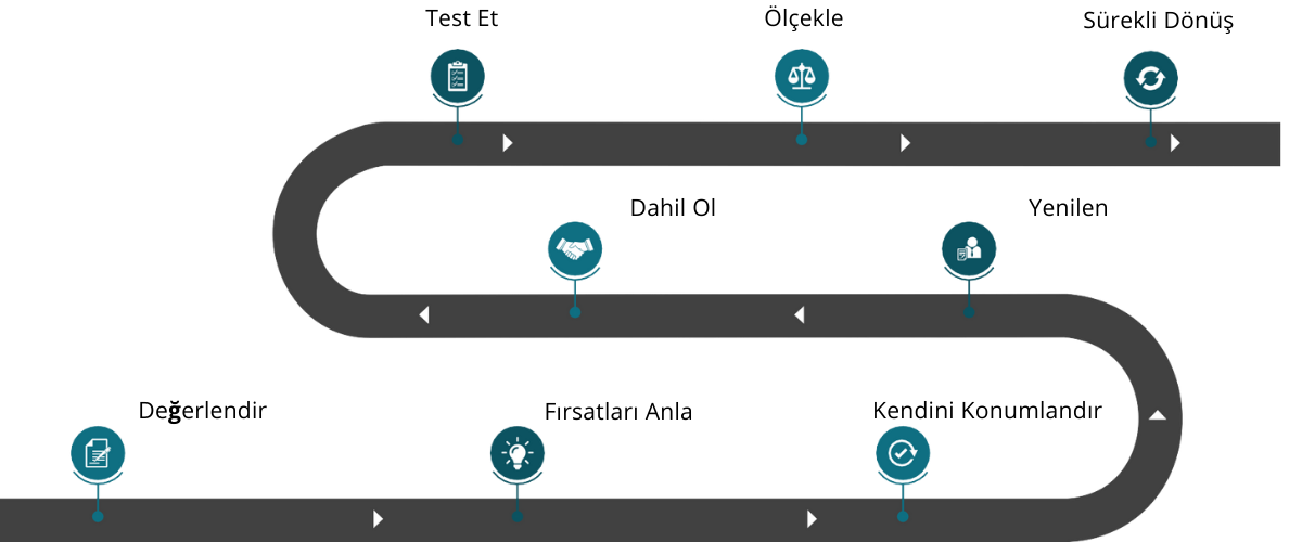 Kurumsal dijital dönüşümünüzde tespit, iyileştirme ve ilerlemelerinizi sağlıyoruz.